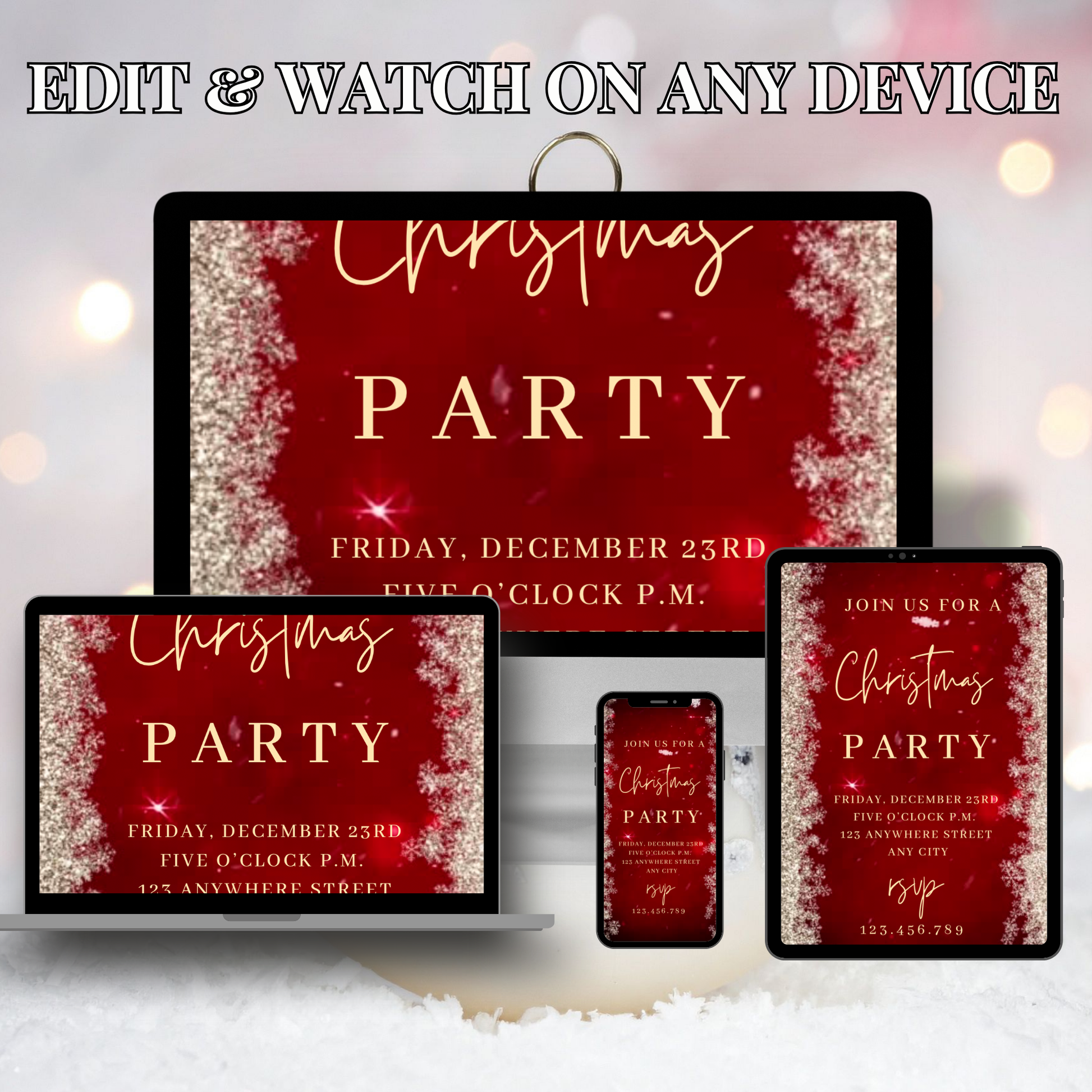 Step into a frosty dream with our Red Winter Wonderland Party Video Invitation. This MP4 digital invite features icy blue tones, snowflake accents, and elegant frosted details that create a magical seasonal look. Fully editable and easy to customize, it’s the perfect way to invite your guests to a sparkling winter celebration.