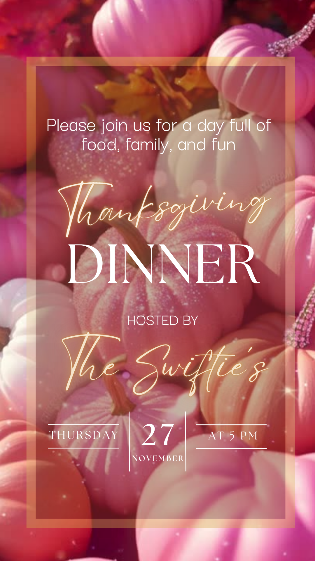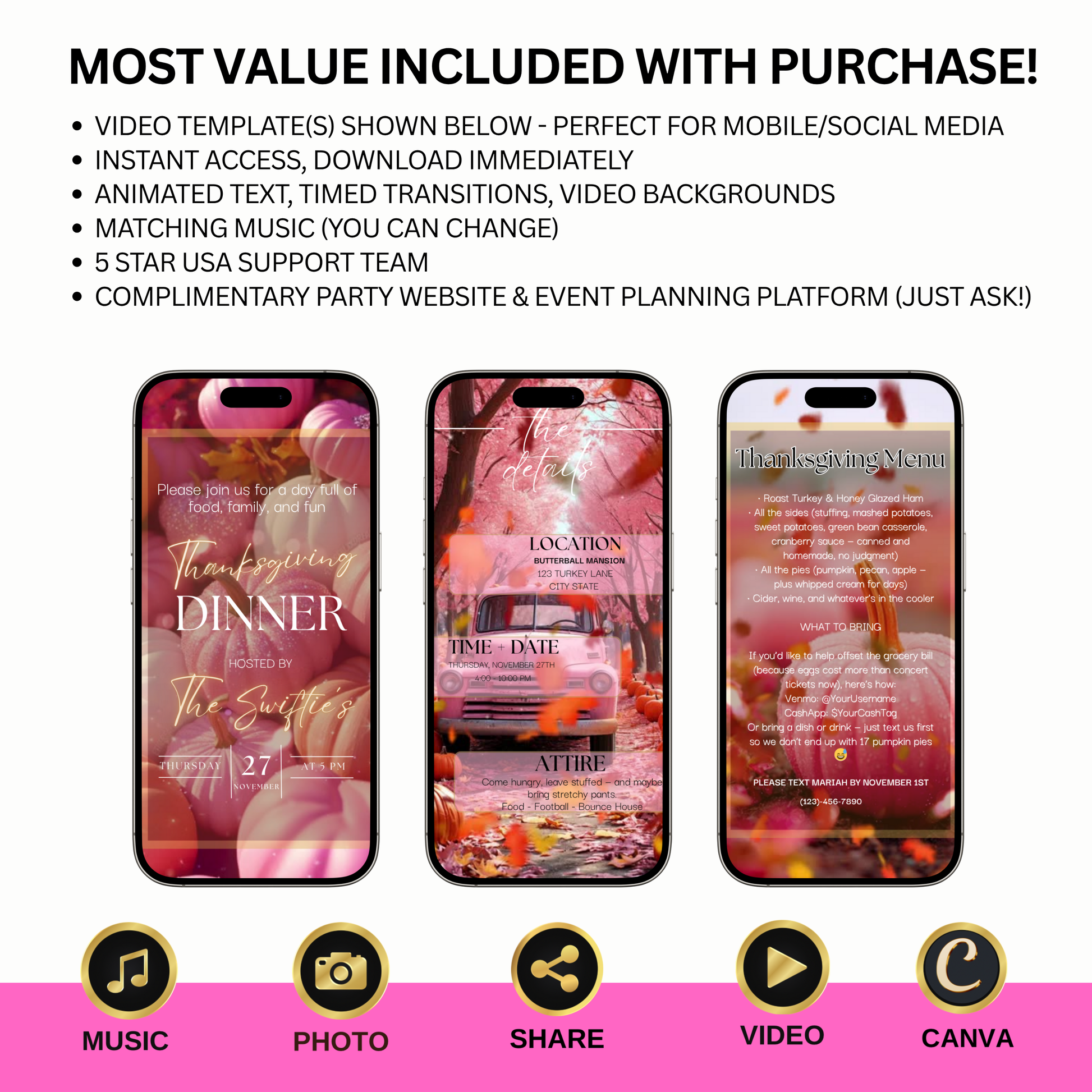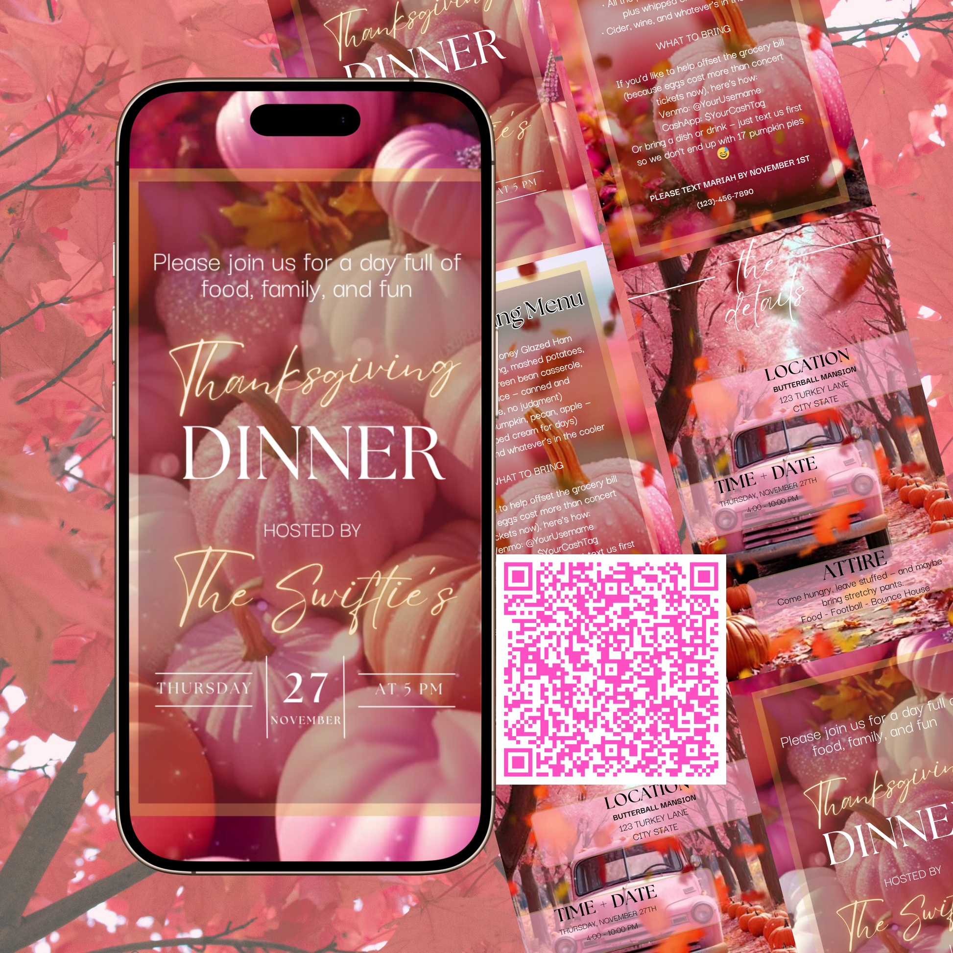 Editable Thanksgiving Video Invitation, Animated Pink Friendsgiving Digital Evite