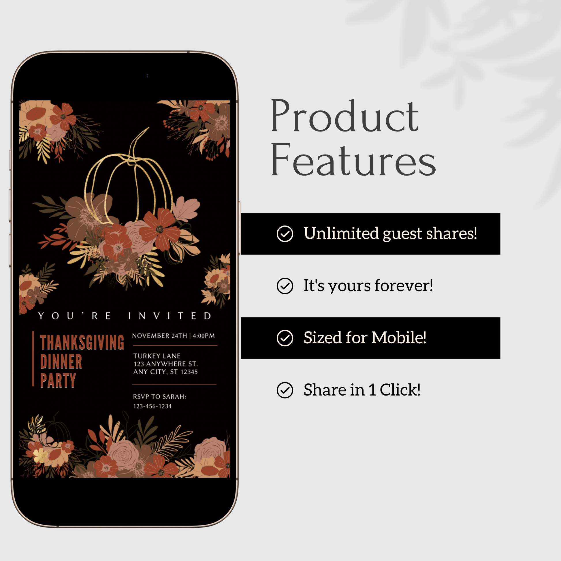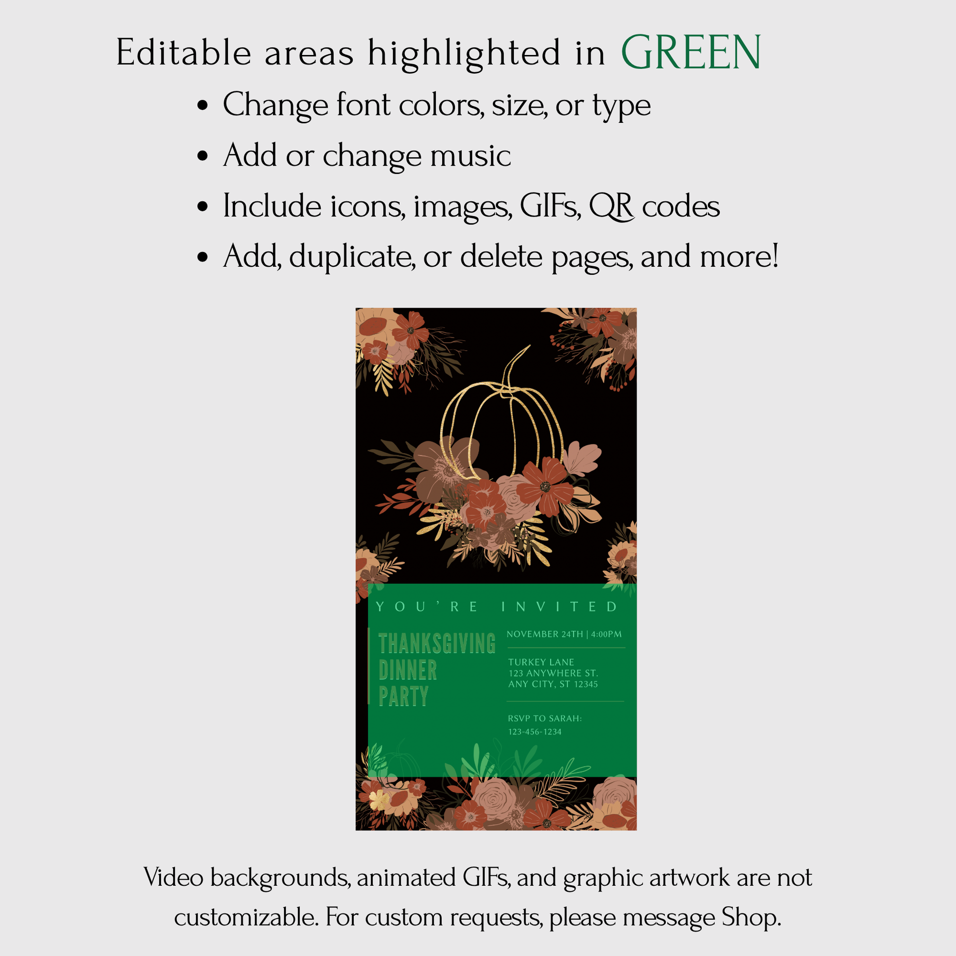 Editable Thanksgiving Video Invitation – Boho Animated Friendsgiving Digital Evite