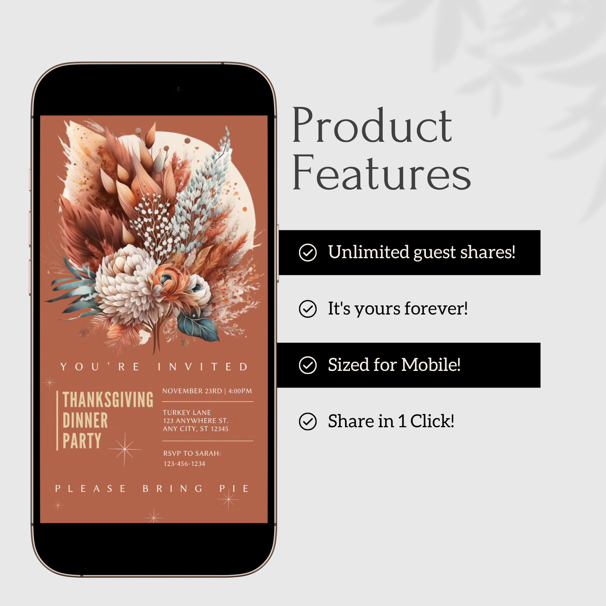 Editable Thanksgiving Video Invitation – Elegant Friendsgiving Dinner Digital Evite with Music