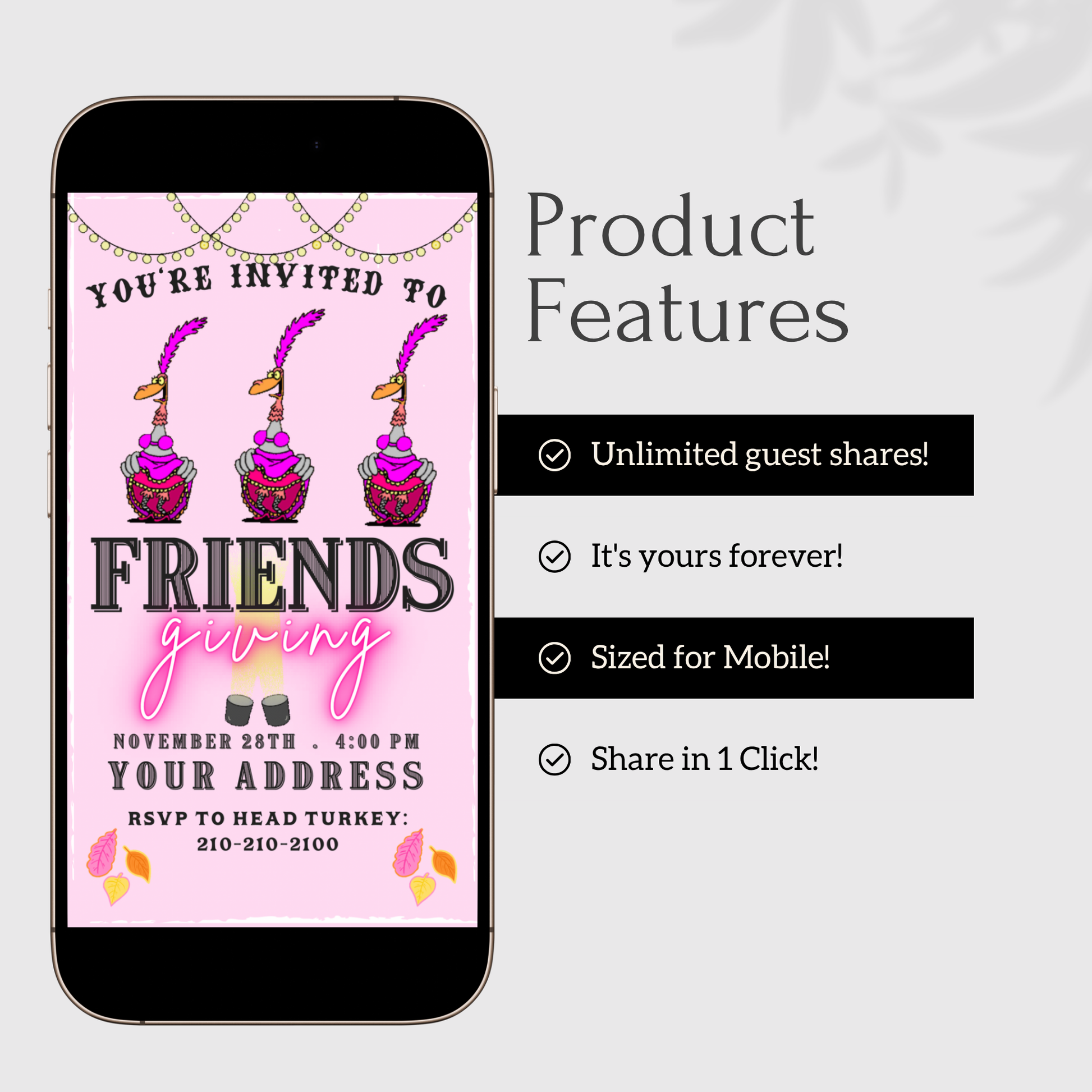 Editable Thanksgiving Video Invitation – Funny Can can Dancing Turkey Friendsgiving Digital Evite