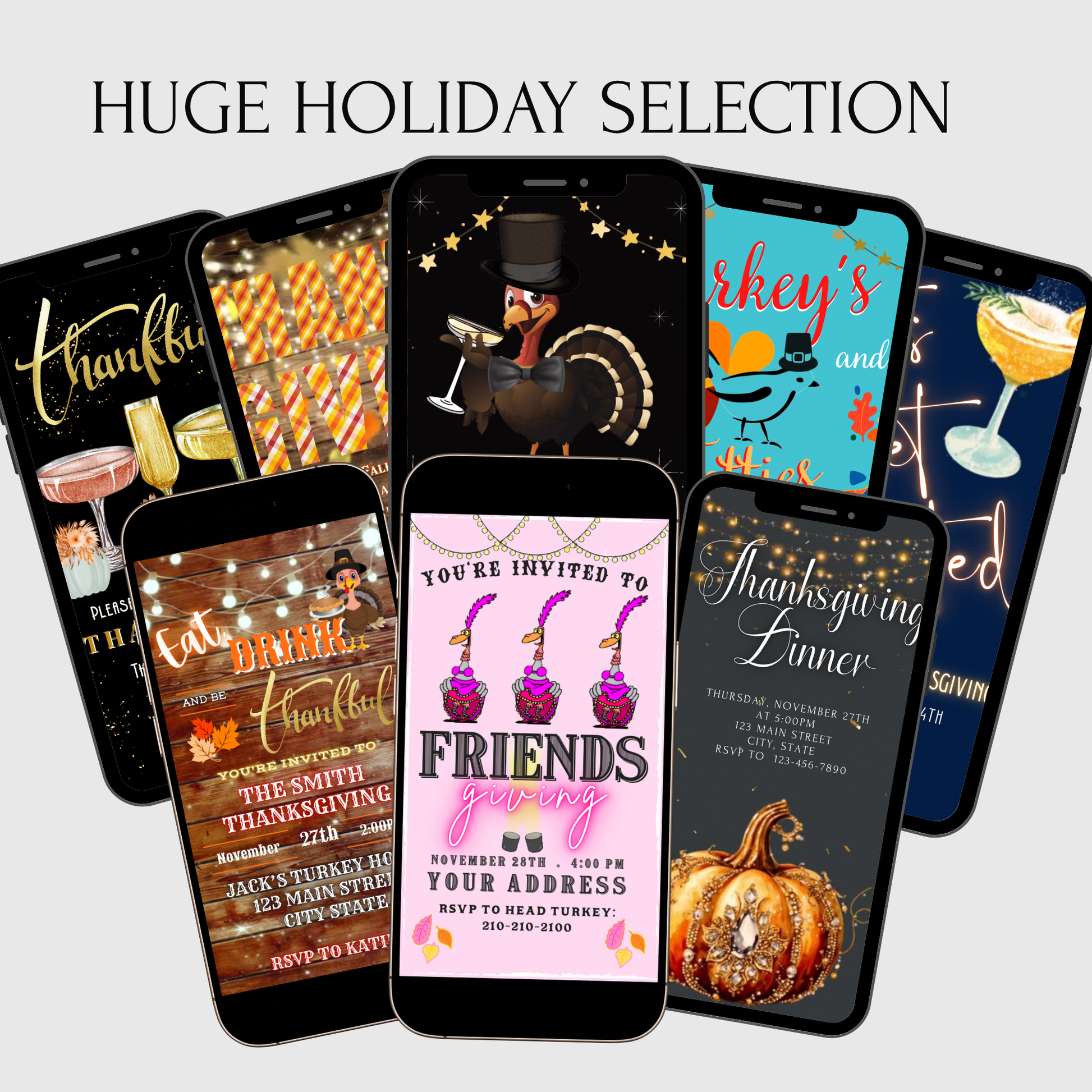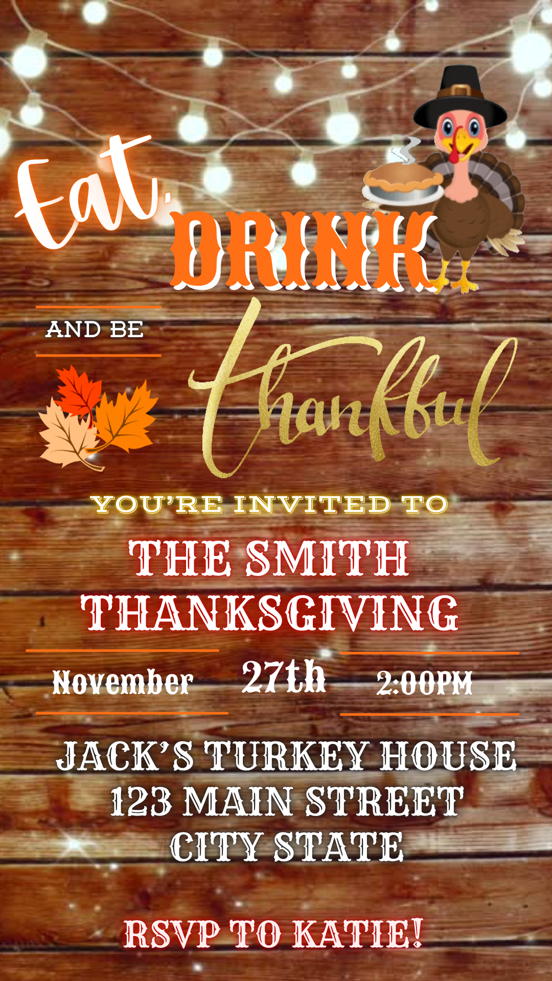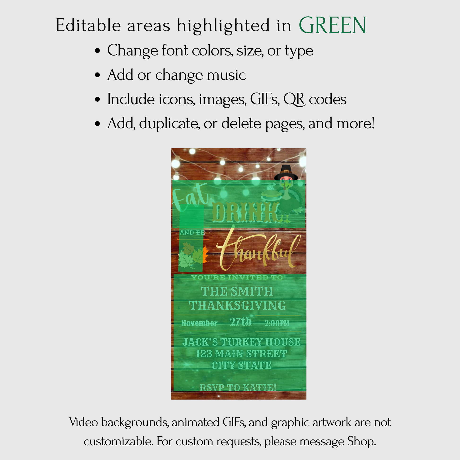 Editable Thanksgiving Video Invitation – Rustic Turkey Friendsgiving Dinner Digital Evite