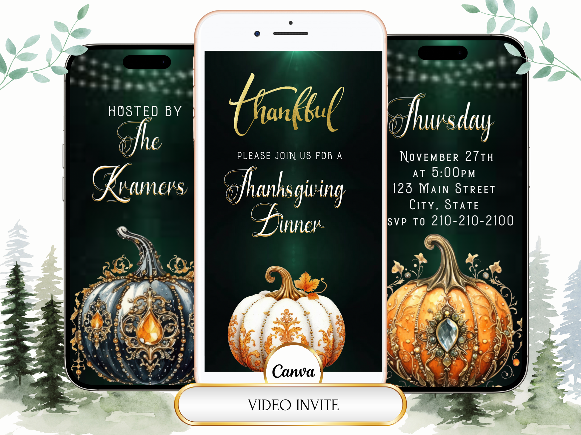 Editable Thanksgiving Video Invitation – Traditional Animated Friendsgiving Digital Evite