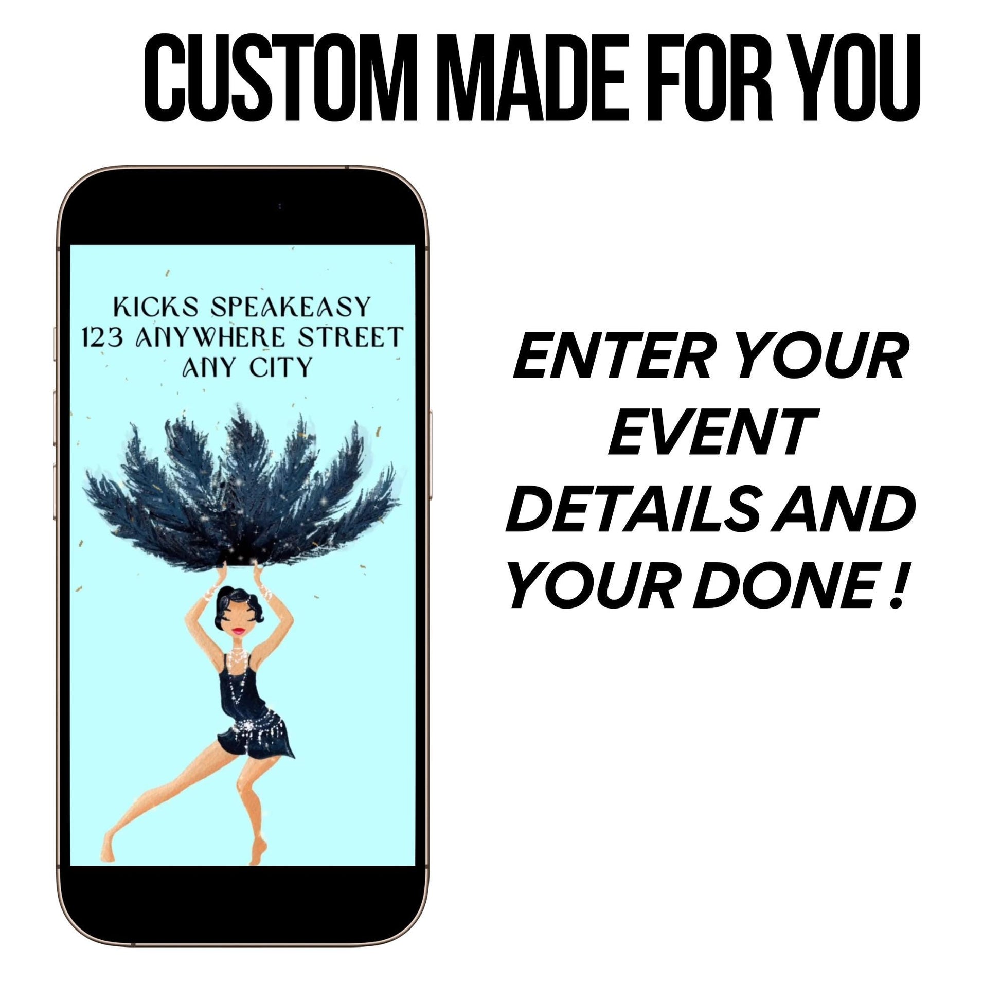 Step into the Gatsby era with this Roaring 20s video invitation! This glamorous art deco accents, gold sparkle animation, and plenty of jazz-age flair—perfect for graduation, milestone birthday, or speakeasy-themed parties.