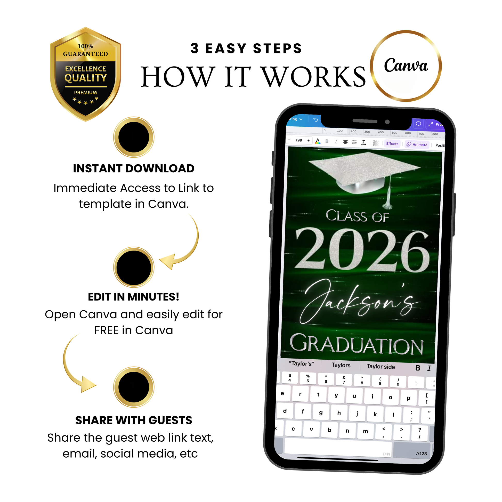 After purchase, you’ll receive a Canva link where you can: