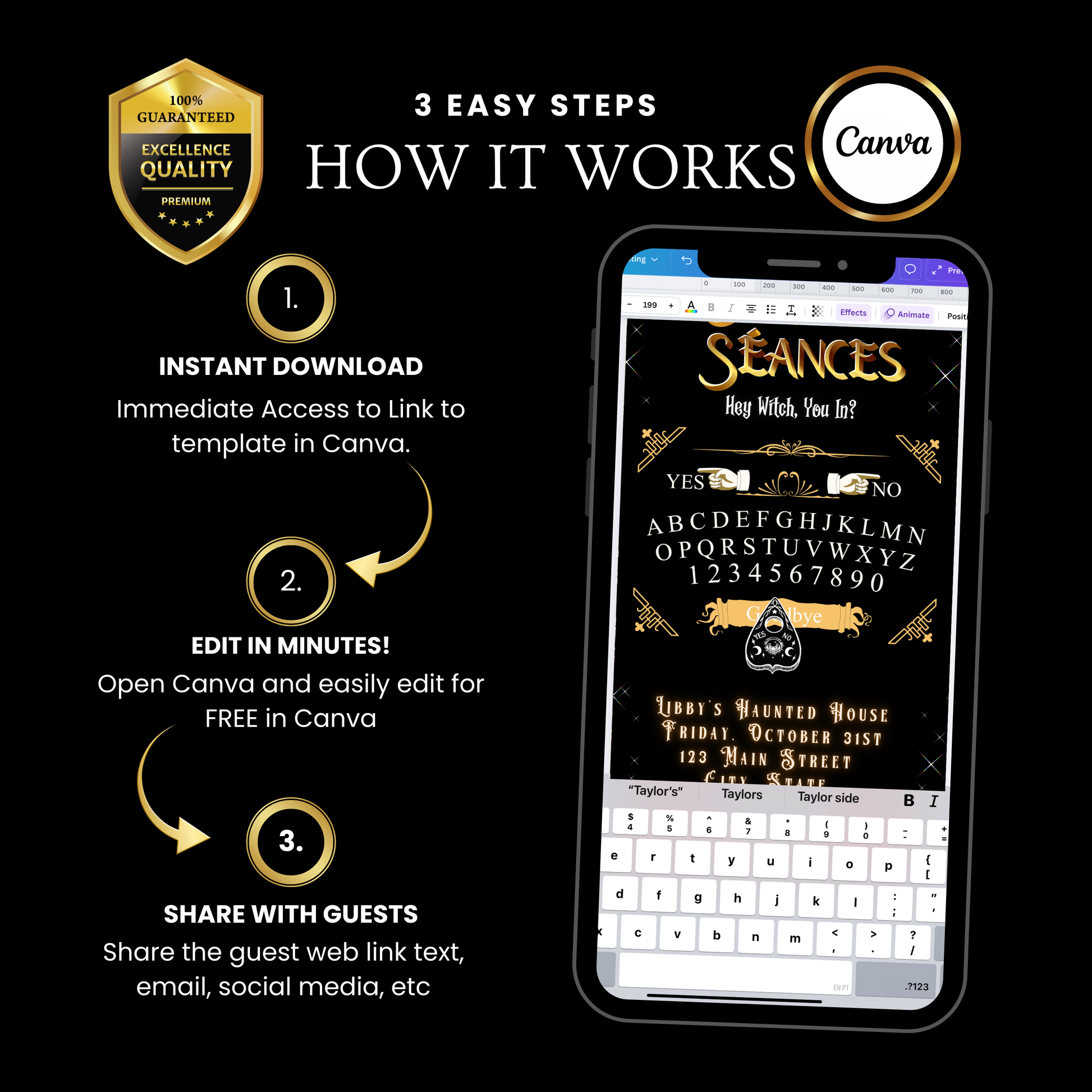 Halloween Video Invitation, Ouija Board Animated Invite, Editable Halloween Party Mobile Evite