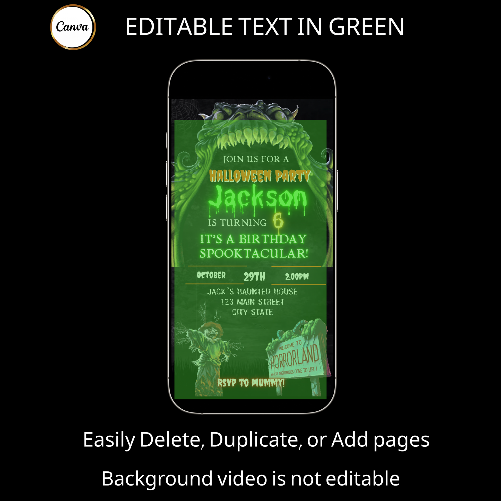 Halloween Video Invitation | Animated Halloween Digital Evite | Editable Canva Invite Template
