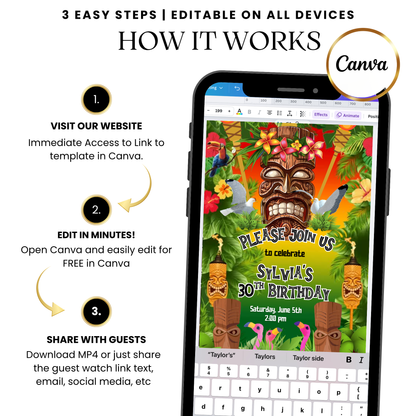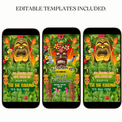 Hawaiian Luau Video Invitation | Tropical Tiki Party Theme | Digital Tropical Invite | Editable Online Template