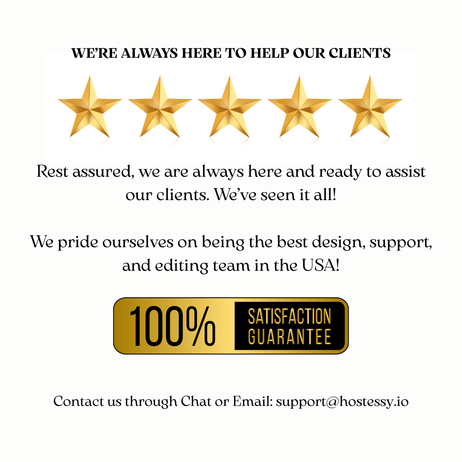 5-star support experience here to help 7 days a week! If you need any assistance with file access, editing, or anything, just contact us.