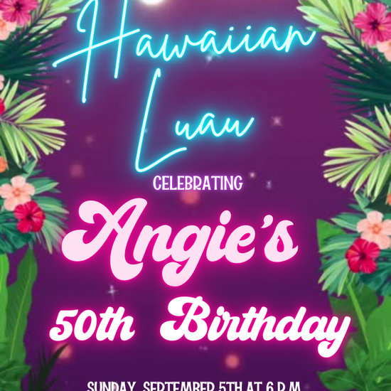 Light up your celebration with this Neon Hawaiian Luau Birthday Video Invitation — perfect for tropical summer parties, milestone birthdays, or backyard luaus! Featuring a neon blue Hawaiian script, vibrant tropical florals, and a customizable design, this animated video invite is editable in Canva and ready to instantly send via text, email, or social media — no printing needed!