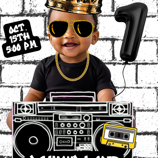 Your baby’s first birthday just hit different! This big one video invite hip hop 1st birthday personalized mp4 card is packed with swagger, style, and bold beats to match your little star’s big milestone. Featuring gold chains, boomboxes, graffiti fonts, and a custom photo, this animated video invitation is professionally edited for you — just send us your details and we handle the rest