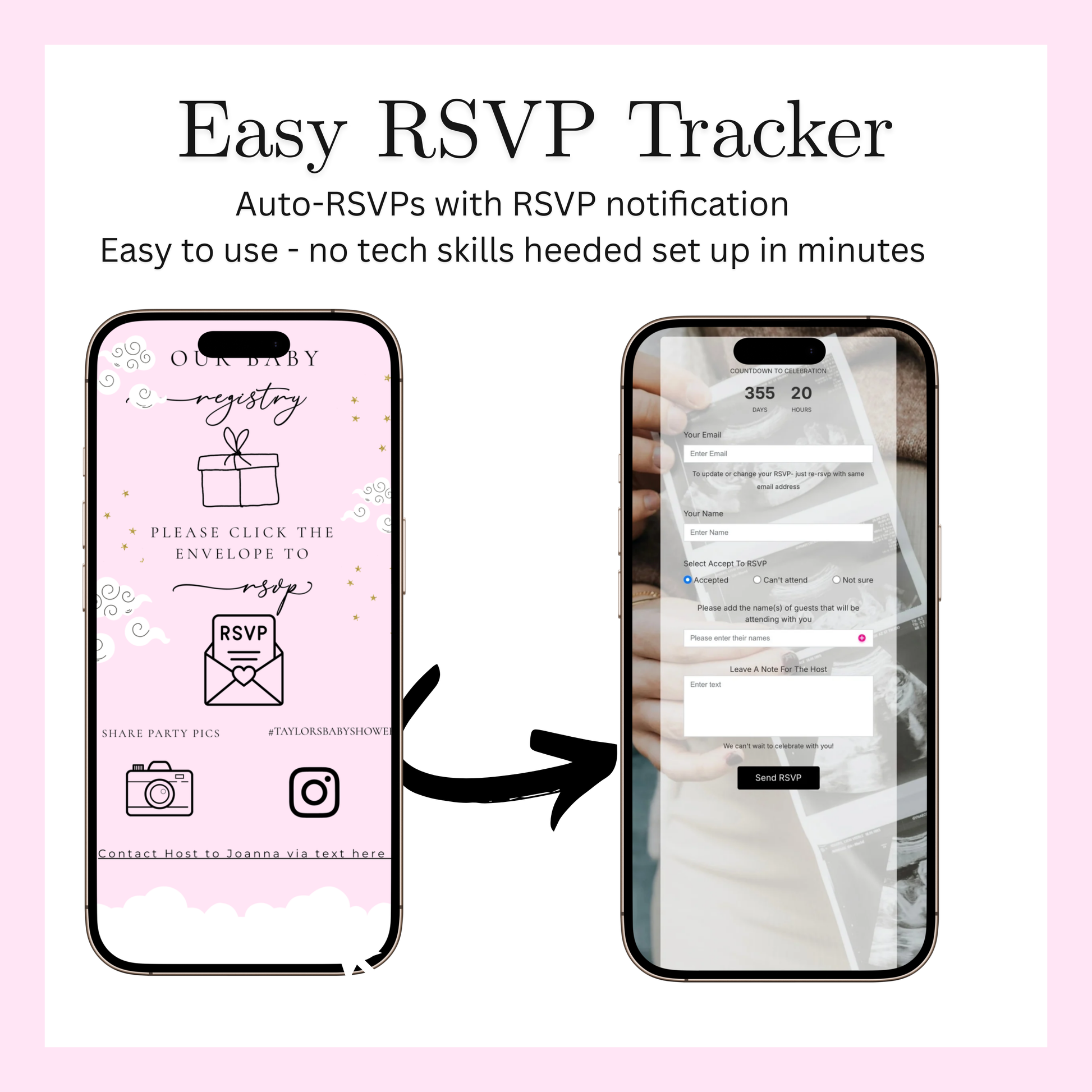 🎀 Ideal for baby showers of any theme—girl, boy, or gender-neutral—expecting moms seeking a modern, all-in-one digital invite, and hosts who love easy sharing via SMS, WhatsApp, email, or Instagram