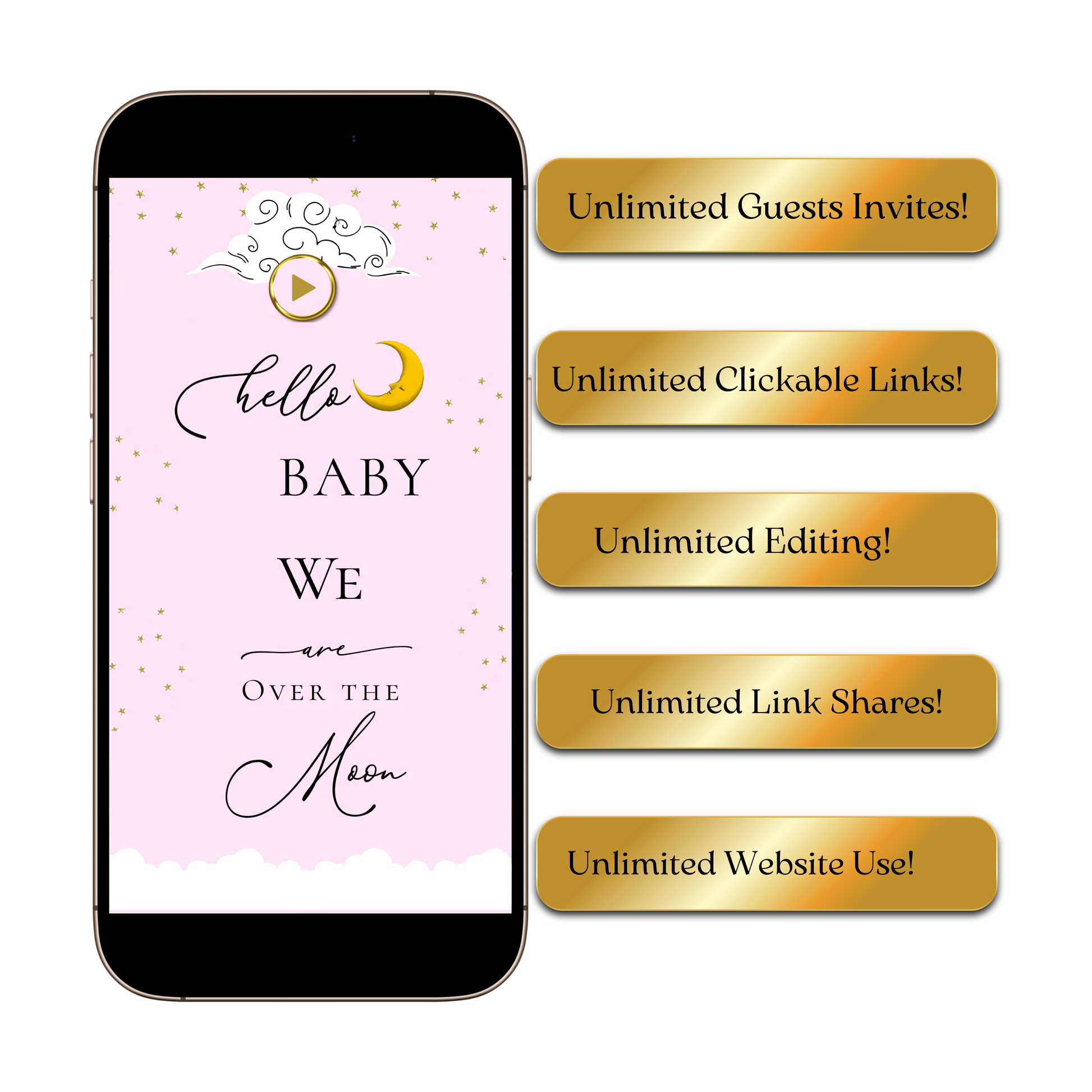 Celebrate your baby shower with the enchanting Over the Moon invitation and interactive guest website 🌙✨ This sleek, mobile-friendly digital template brings everything together—invitation, RSVP, baby registry, music, maps, and event details—all in one magical link.