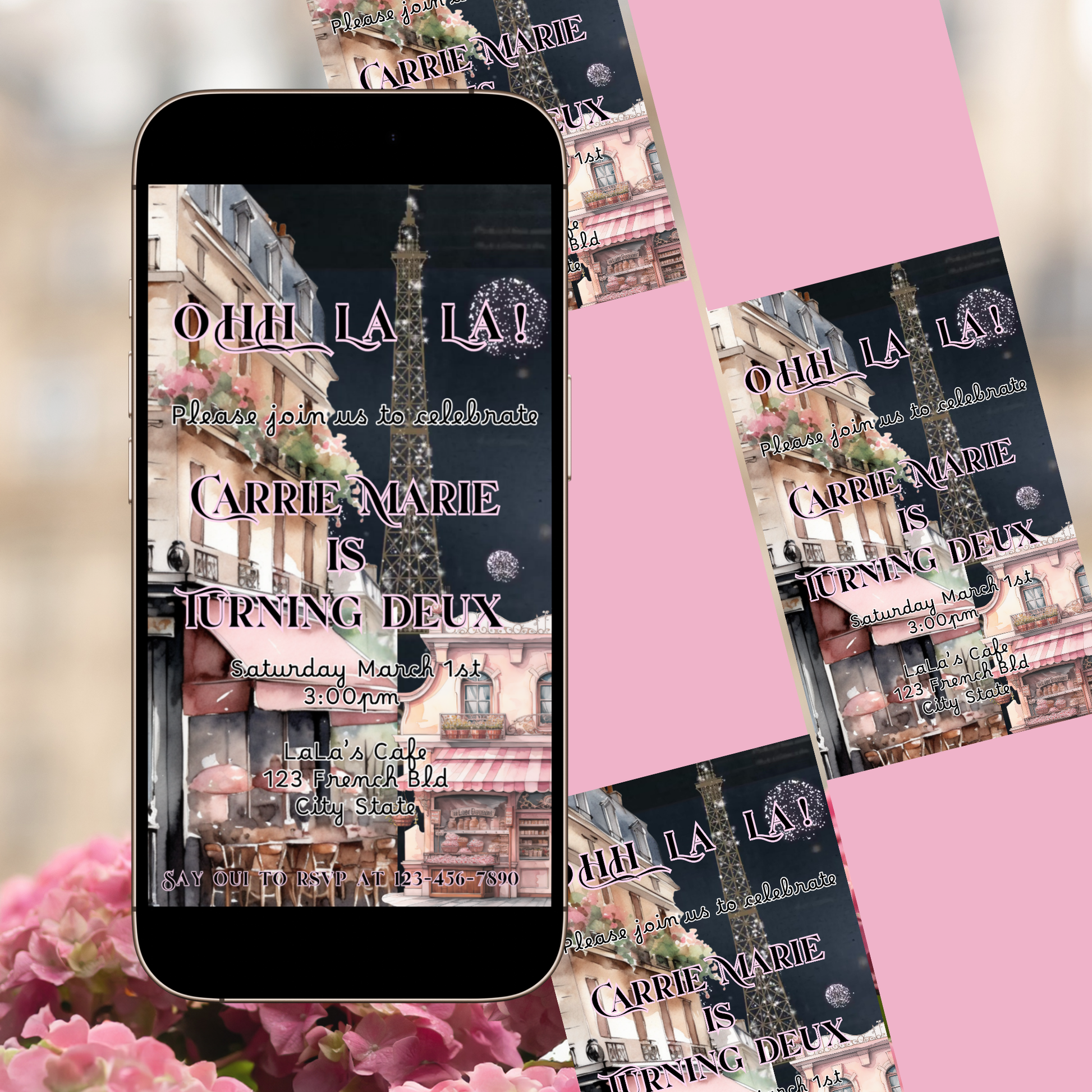 Paris Cafe Video Invitation – Parisian Eiffel Tower Birthday Party Evite with Music
