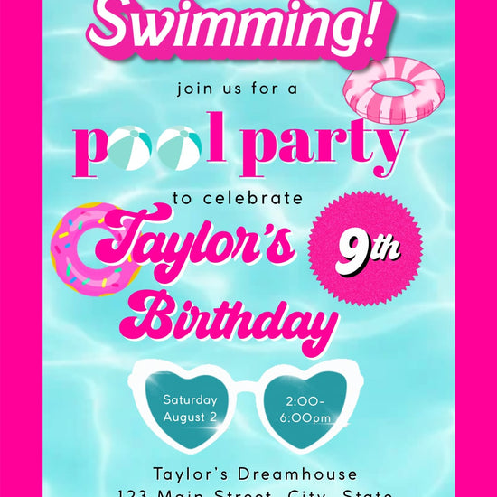 Barbie Pool Party Video Invite Summer Tween Pink Party