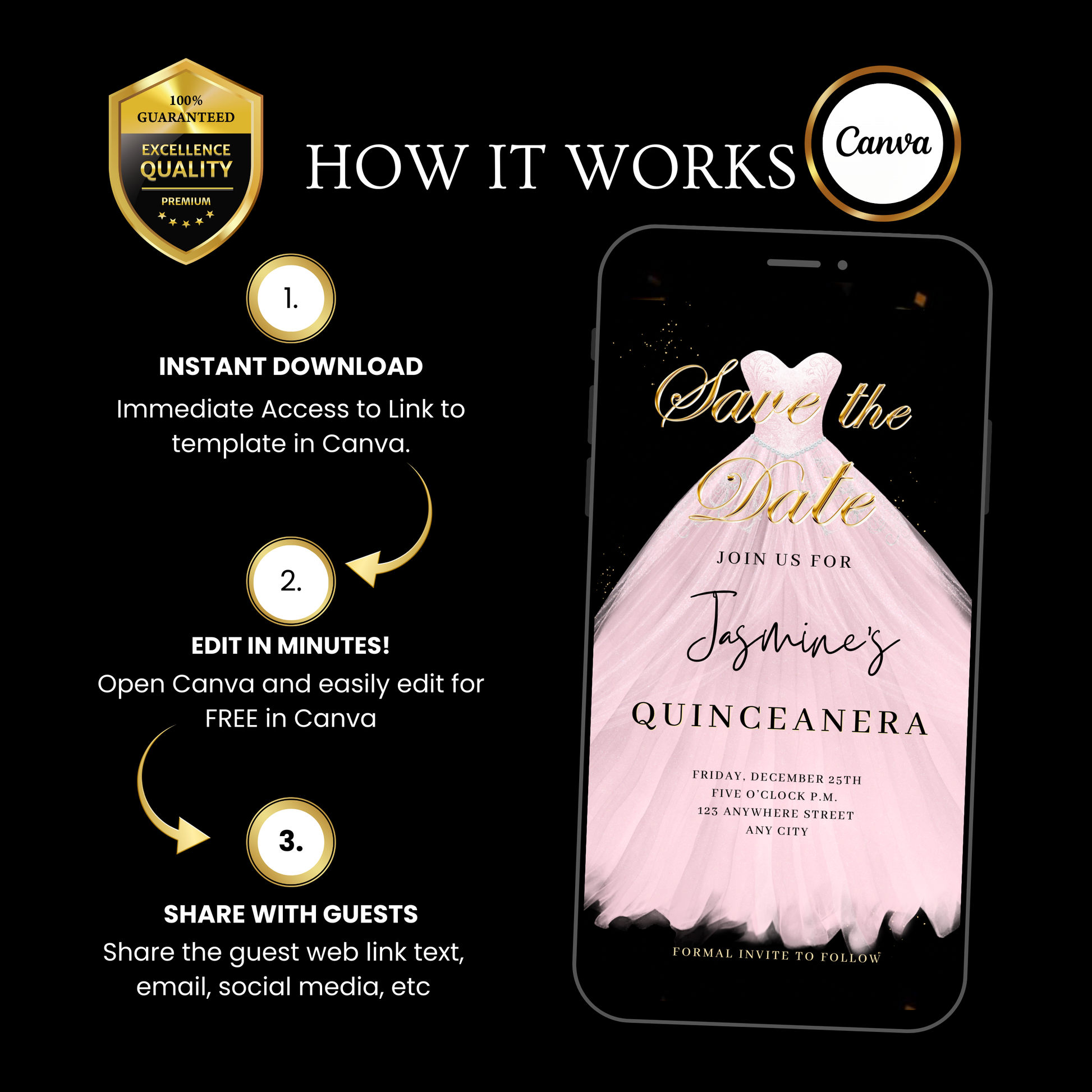 Editable Quinceañera Video Invitation Template – Digital Sweet 15 / Sweet 16 Invitation
