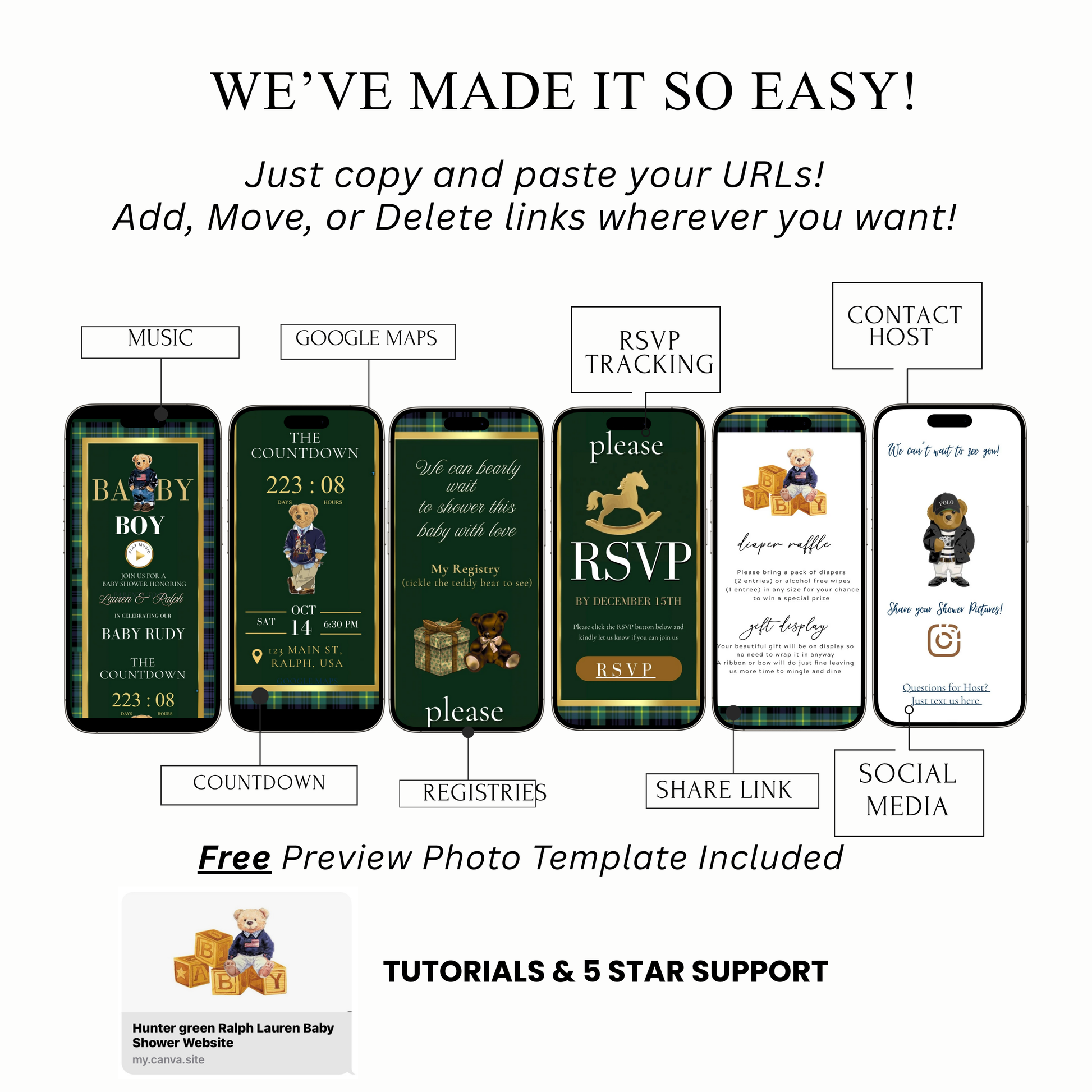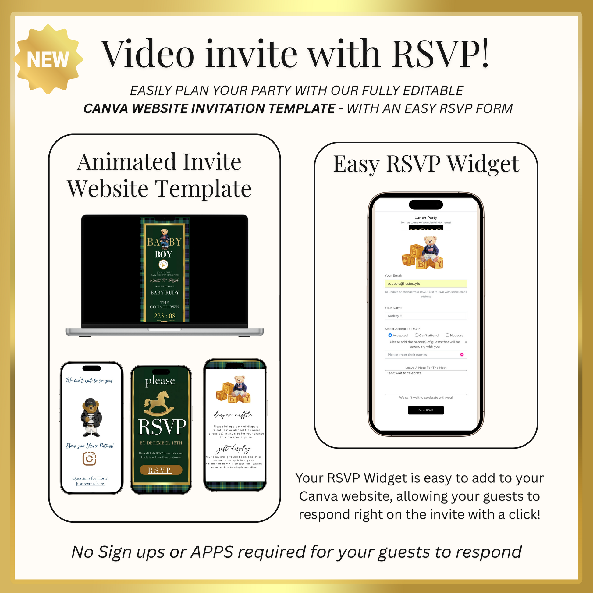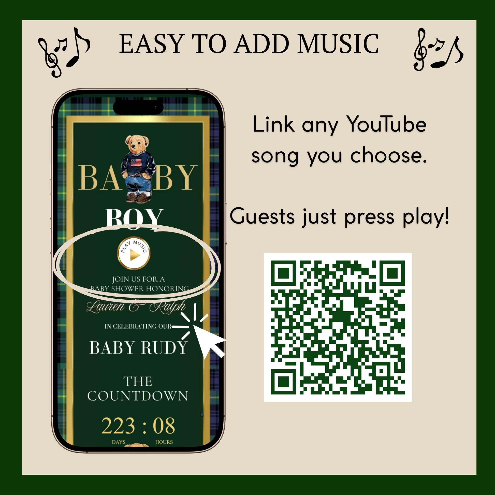 Polo Bear Ralph Lauren Baby Shower Website Invite | Animated Bearly Wait Baby Shower Invite with Rsvp tracking