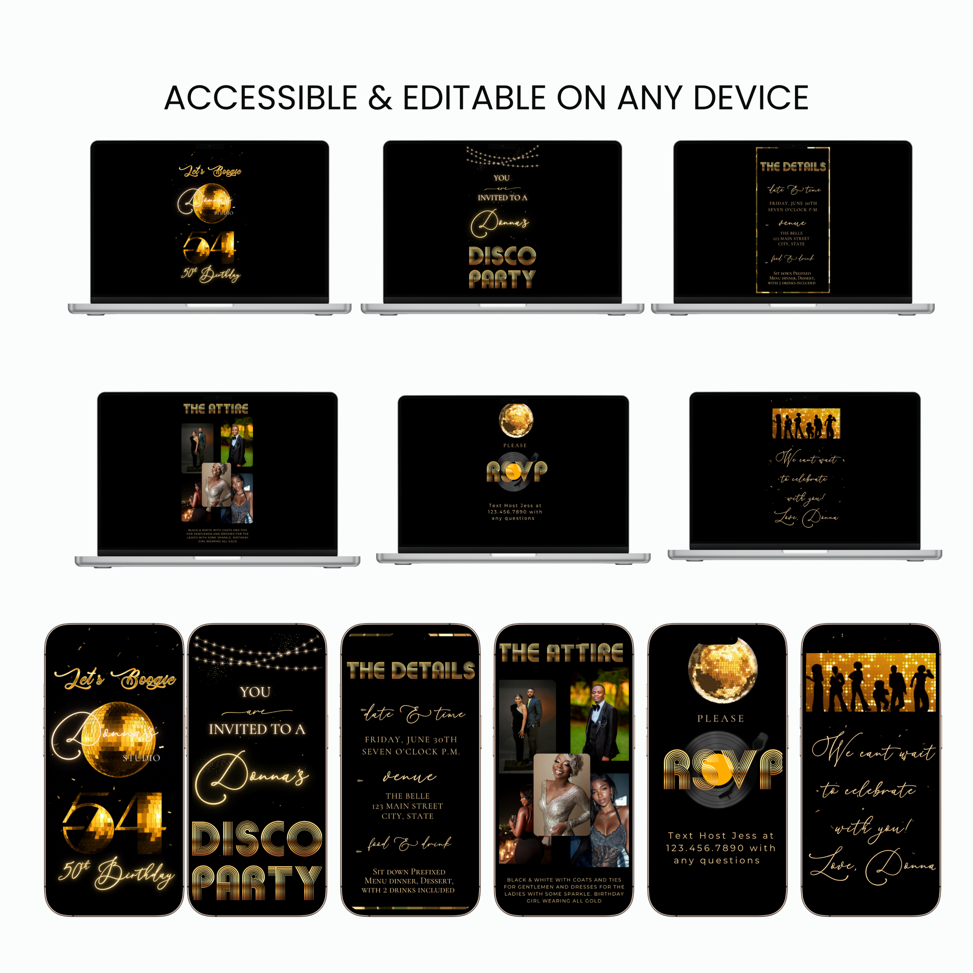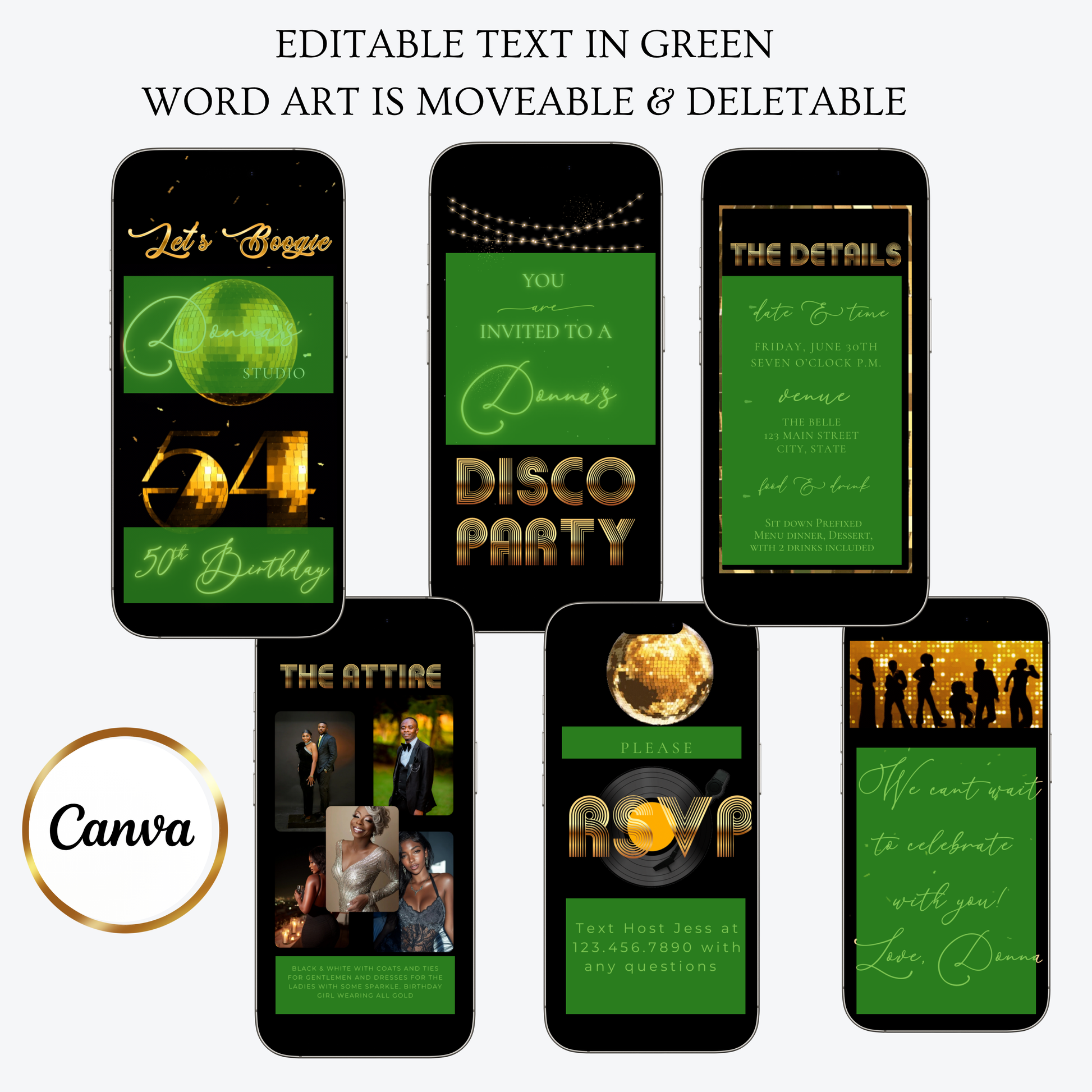 ✔ Fully Editable personalized disco celebration invitation with your details