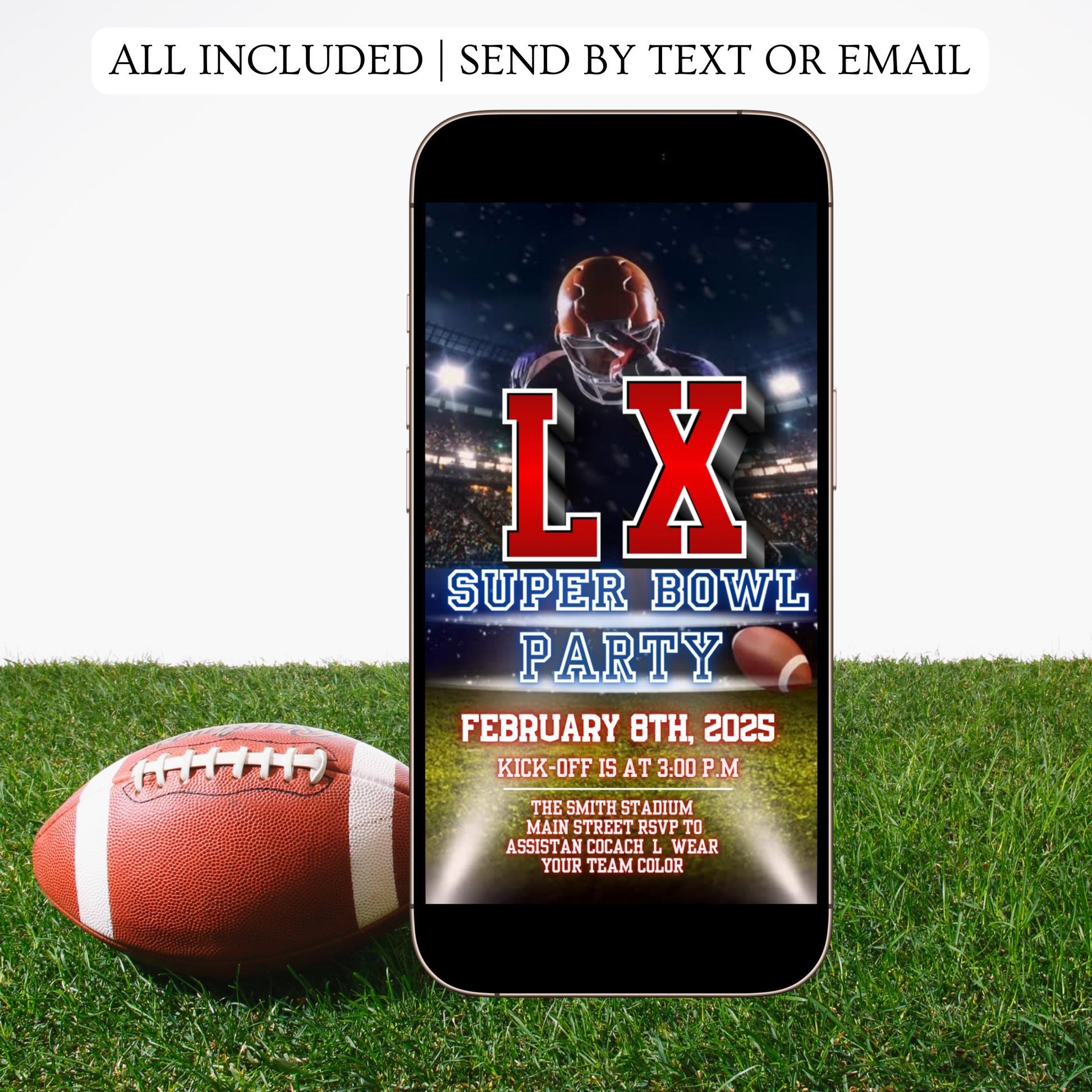 Super Bowl LX Party Video Invitation | Digital Football Canva Template