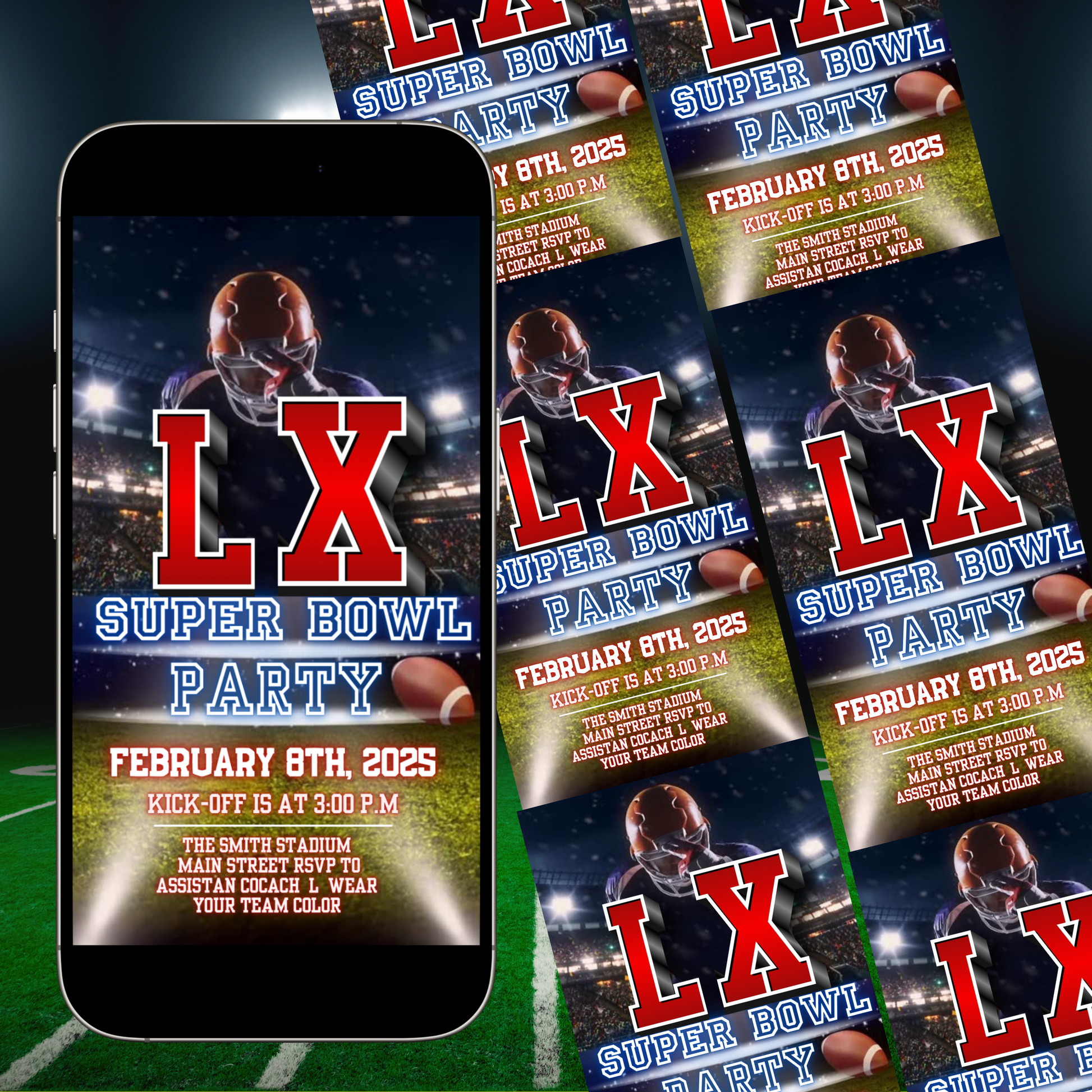 Celebrate your event with our Super Bowl Party Video Invitation, a beautiful digital video invitation designed for easy sharing and editing. This high-quality MP4 invite features cinematic motion, crisp typography, and smooth transitions to set the perfect tone for your celebration.
