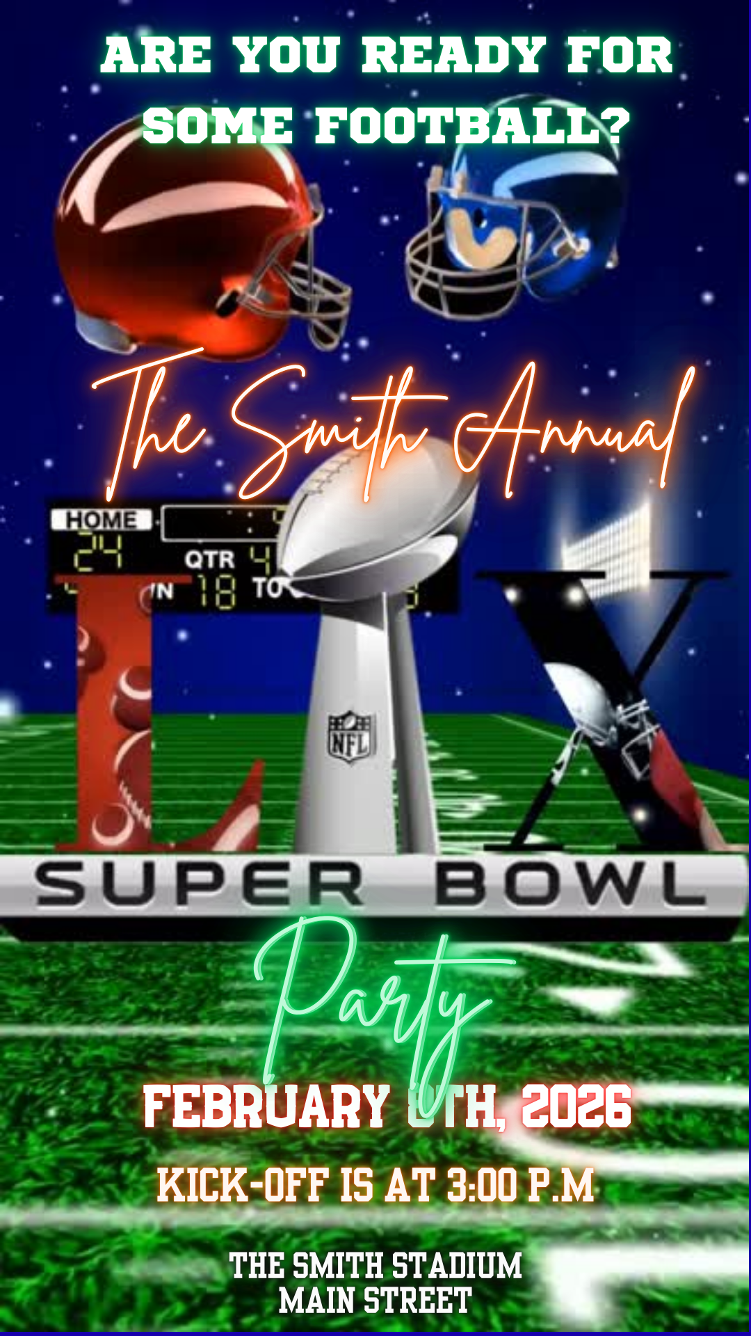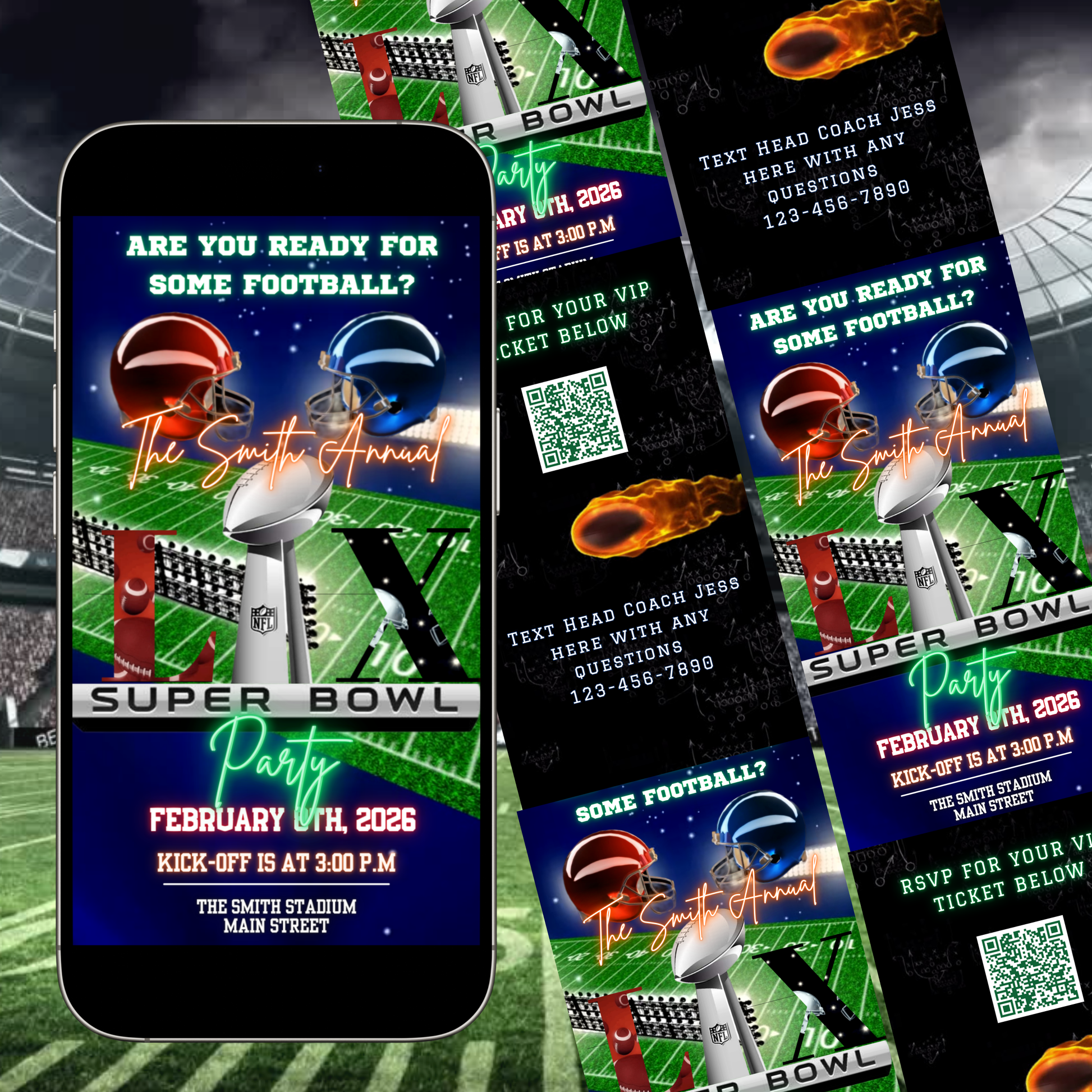 Super Bowl LX Party Video Invitation | Digital Football Game Day Invite | Editable Online Template
