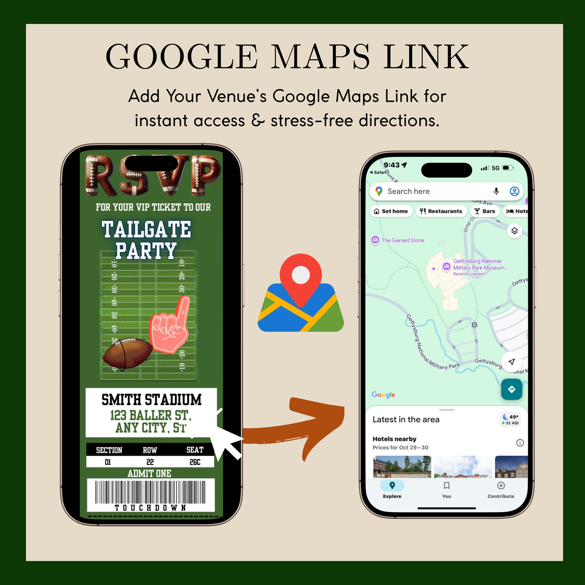 Editable in Canva, this animated football-themed invite includes music, stadium lights, and tailgate vibes. Send instantly via text, email, or social media and track RSVPs in real time.