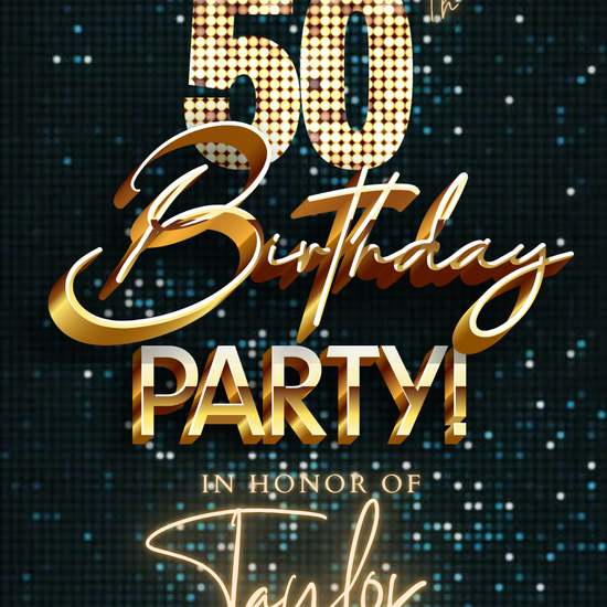 Celebrate turning 50 in unforgettable style with this Teal Gold Sequin 50th Birthday Video Invitation! This animated, editable Canva video invitation is designed in a mobile-first vertical format and is perfect for sharing by text, email, or social media.