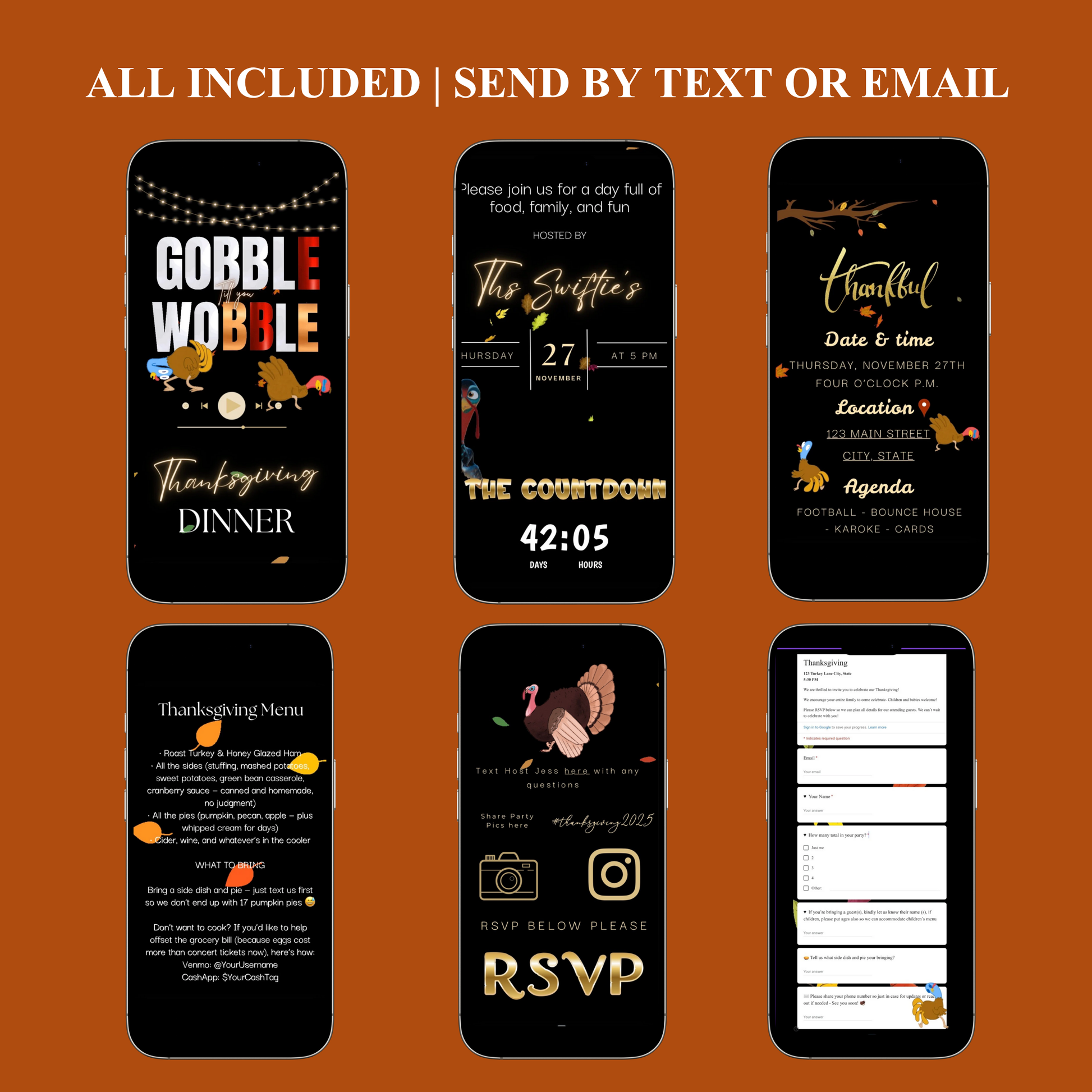 Thanksgiving Invitation Website with RSVP tracking, Animated Friendsgiving Dinner Invite Website Template
