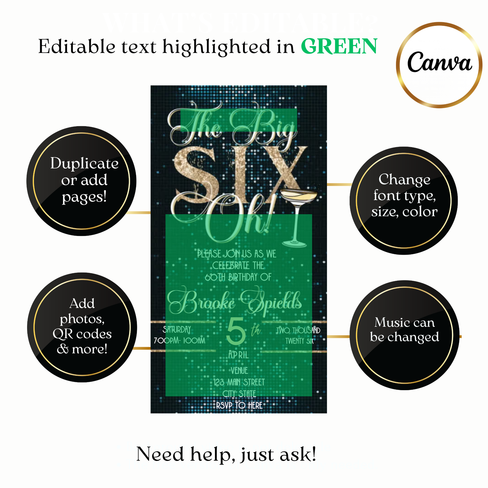 The Big Six Oh! Video Invitation | Digital 60th Milestone Invite | Editable Online Party Template