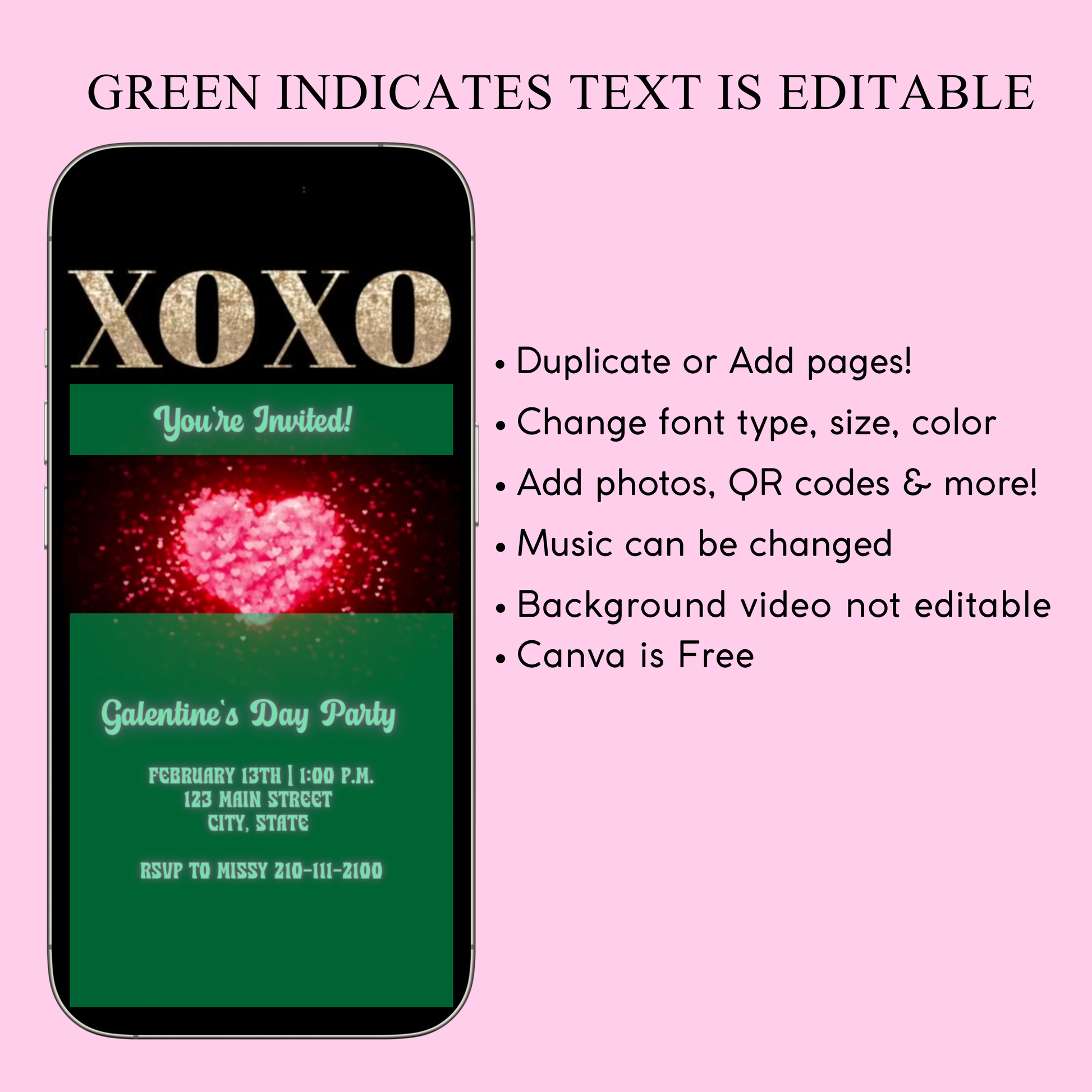 Valentines Day Party Video Invitation | Digital Galentines Animated Invite | Editable Canva Evite Template