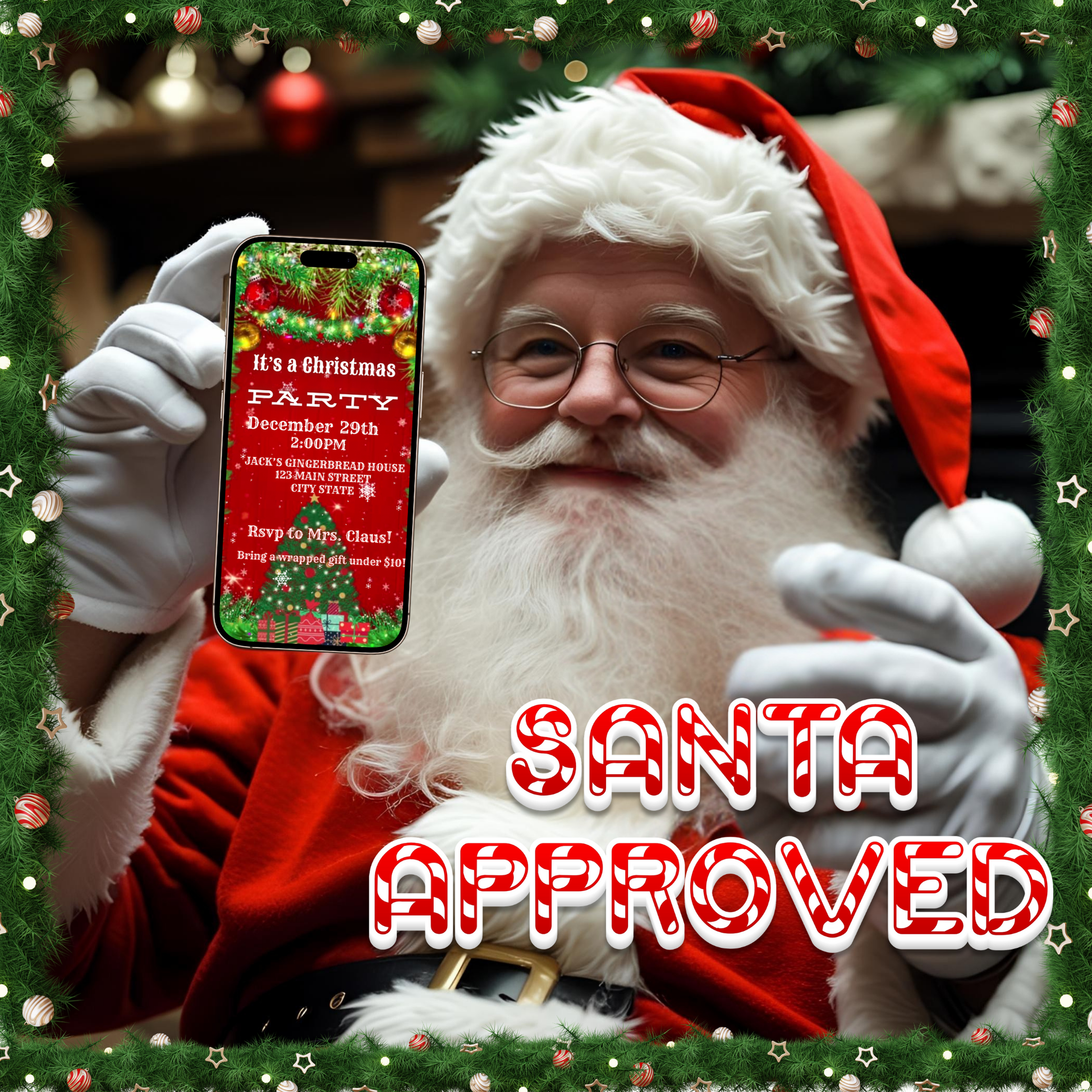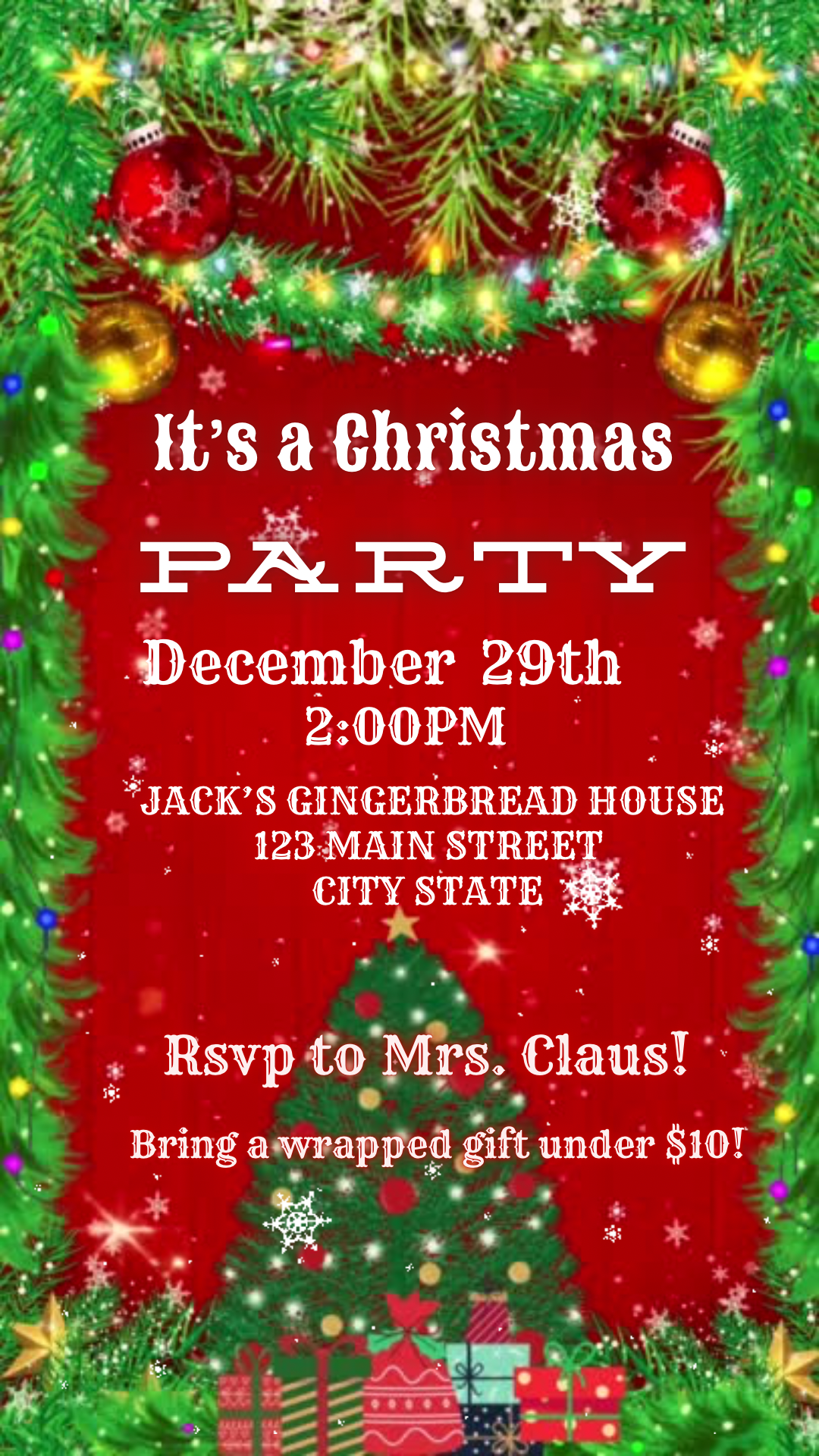 Invite your guests with a Festive Christmas party video invitation! Whether you’re hosting a family Christmas party, office holiday celebration, pajama party, or a glamorous winter wonderland soirée, this editable Canva template is fun, festive, and easy to personalize.