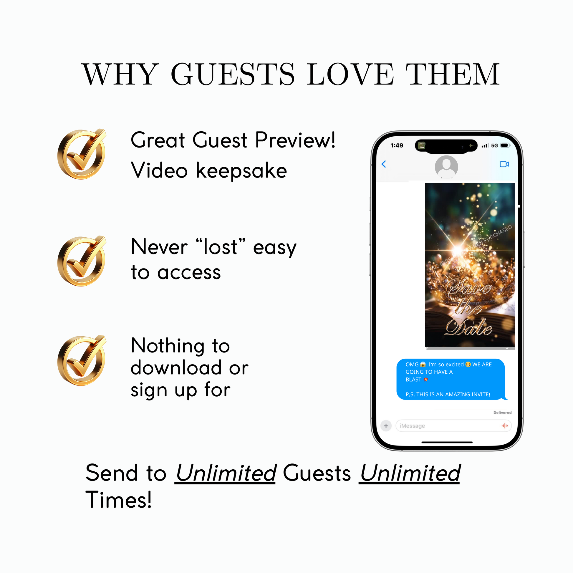 Instantly downloadable digital video invite with animated text and music for parties and celebrations.
